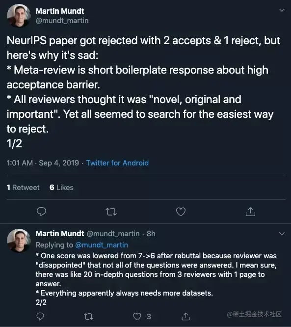 大会规则也有所变化,所有投稿论文都要回答关于研究可复现的问题,并且倡议论文和实现代码一起提交,谷歌研究员 hardmaru 评论称,虽然不强制执行,但也给了评审依据,来快速拒绝那些不承诺披露代码的论文。