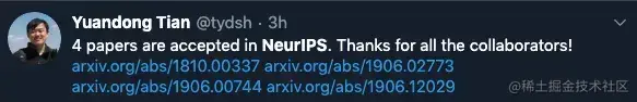 本届 NeurIPS 最引人注目的赢家恐怕就是田渊栋博士了,也是一次就中了 4 篇。