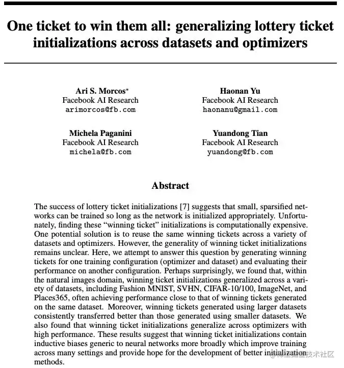 《One ticket to win them all: generalizing lottery ticket initializations across datasets and optimizers》