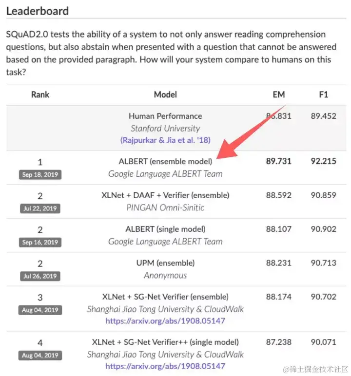 有 Reddit 网友发现,一个叫做 ALBERT 的模型,在 SQuAD 2.0 leaderboard 和 GLUE benchmark 都达到了最佳水准。这是一个前所未见的新模型,引起了大家的好奇。