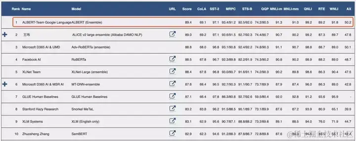在这么多投稿中,一篇来自谷歌的论文很快引起研究社区瞩目。该论文提出一个名为ALBERT的模型,比 BERT-large 参数更少,却在 GLUE 基准远远甩开 BERT-Large 拿到榜首。不仅如此,该模型横扫 GLUE、RACE 和 SQuAD,以显著的优势稳坐第一。