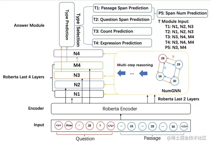 除了最核心的 NumGNN 模块外,NumNet+还结合了预训练模型 RoBERTa。