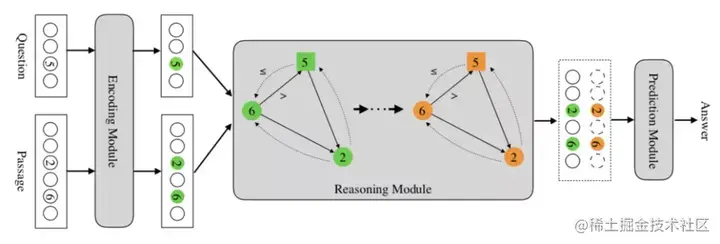 该模型由编码模块、推理模块和预测模块组成。数字之间的数学关系用图的拓扑结构来编码。例如,从 “6” 指向 “5” 的边表示 “6” 大于 “5”。推理模块利用数字感知的图神经网络对图进行数字推理。由于模型中明确地建模了数值比较,因此该模型对于回答需要数值推理的问题,如加法、计数或数字排序,更为有效。