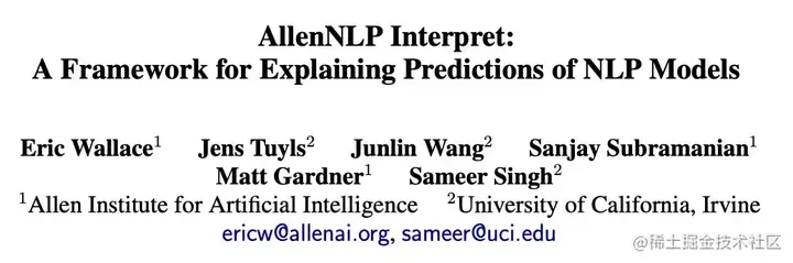 最佳Demo奖:AllenNLP Interpret: A Framework for Explaining Predictions of NLP Models