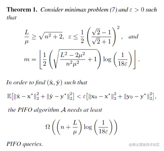 复杂度来找到这个鞍点,这里需要的条件是fi需要L-smooth以及μ-strongly-convex-μ-strongly-concave,而作为范围更广的IFO算法,有前人证明了它所需要的上界同样是该值,所以这个下界是精确的最优下界。