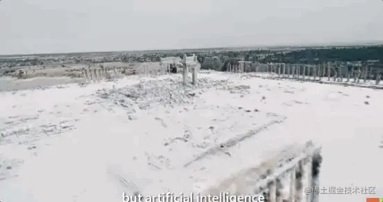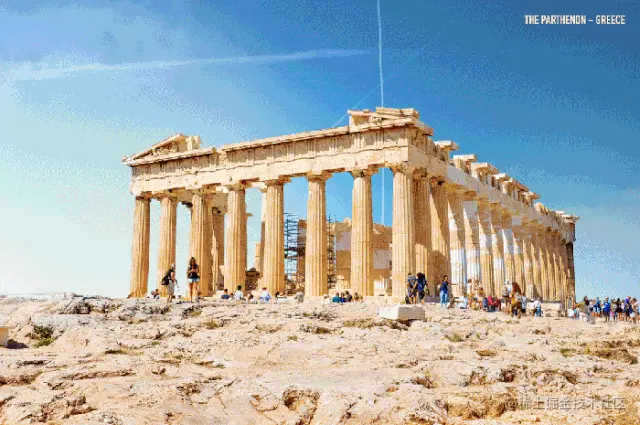 再看帕特农神庙。在希腊首都雅典卫城的古城堡中心,这座建筑正伫立在那里,俯瞰世界。历经2000多年的沧桑变迁,这所神庙已经坍塌。但在这个GIF中,只见庙柱先被修复,随后庙顶生成。最后,精致的雕花完美复刻了那个年代的战争与和平。