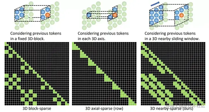 不同的三维稀疏注意力机制的比较