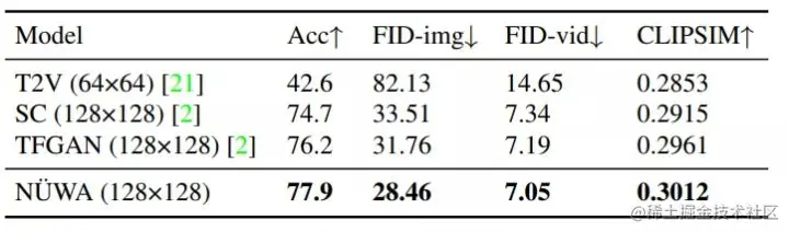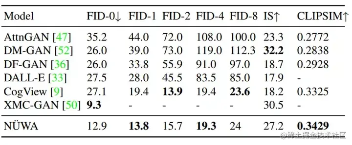 显然,NÜWA在上述所有指标上都取得了SOTA。