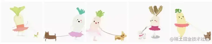 从文本「一个穿着芭蕾舞裙遛狗的萝卜宝宝」生成的图像示例