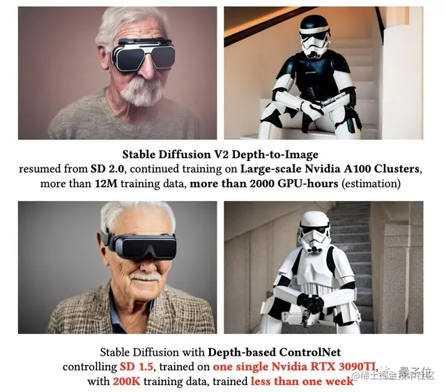 相比之下,原扩散模型经过几十亿张图片的预训练,因此参数是被“锁定”的。而这个“可训练副本”只需要在特定任务的小数据集上训练,就能学会条件控制。
