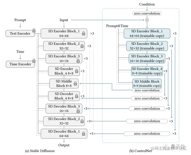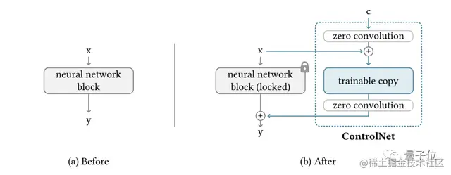 “锁定模型”和“可训练副本”通过一个1×1的卷积层连接,名叫“0卷积层”。