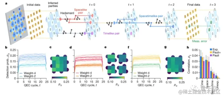 因此,可以在奇偶校验测量发生意外变化时检测到错误,并不会干扰逻辑量子比特的状态。