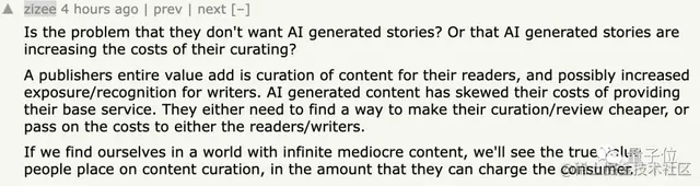 一位网友表示,作为出版商,其价值就是给读者“策划内容”,顺便给一些优秀的作者增加曝光度。他们应该是希望看到AI创作的作品的(而不是现在的全盘拒绝)。
