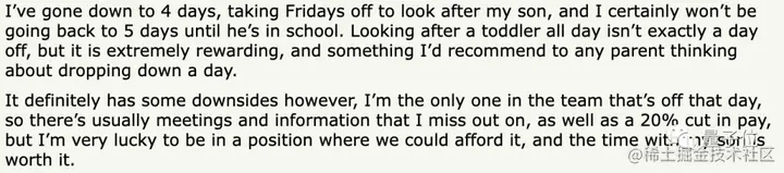至于工资嘛,有人并没因此减薪,而有人即使降薪,也依然更喜欢四天工作制。