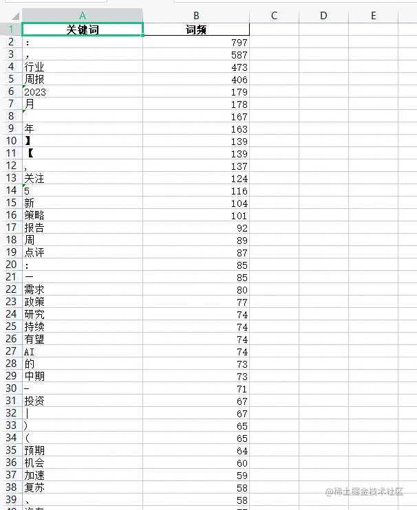 这是输出的结果,显然不符合我们预期的要求。因为里面很多无意义的关键词和符号。这些叫停用词。