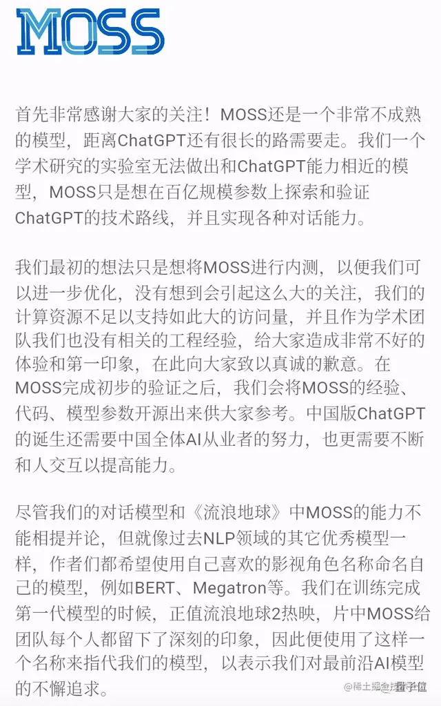 MOSS是复旦大学自然语言处理实验室的成果,并且该项目还得到了上海人工智能实验室的支持。