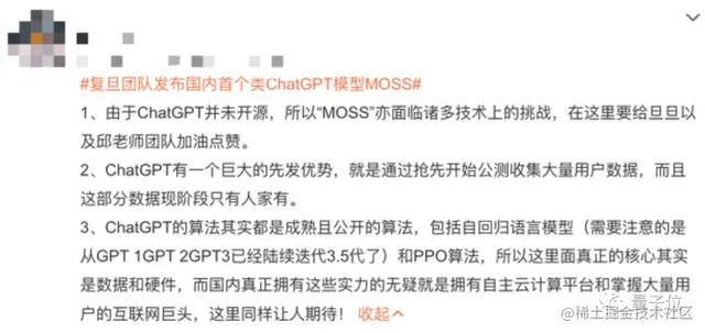 当然,和ChatGPT相比,MOSS也不是“一无是处”(手动狗头),起码它会在3月份开源代码。