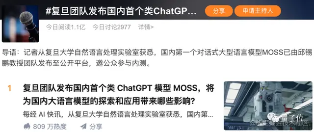 复旦团队用了《流浪地球》里面拥有自我意识的AI——MOSS来命名这一模型,直接把消息热度推上顶峰。