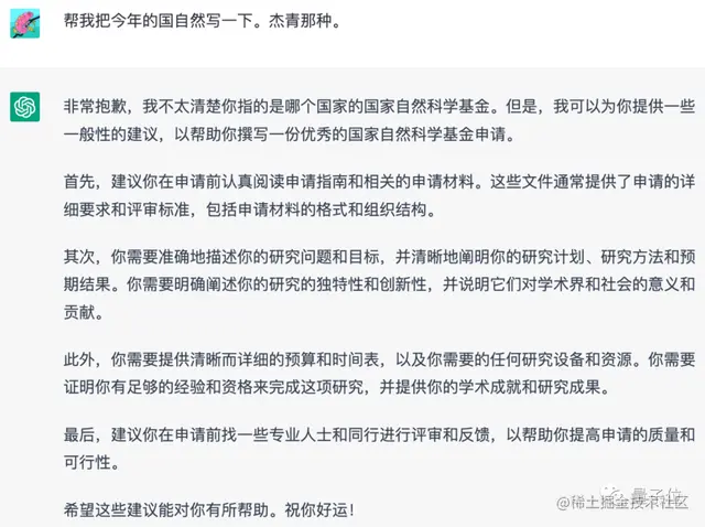 例如“帮忙写一下国家自然科学基金申请,杰青那种”,MOSS回答如下: