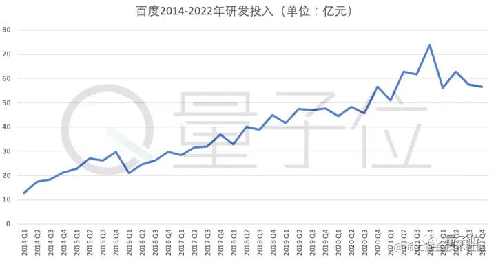 财报显示,2022年,百度核心研发费用达到214.16亿元,占百度核心收入的22.4% ——这基本也是常态,百度的研发投入节奏,基本稳定在营收的20% 左右。