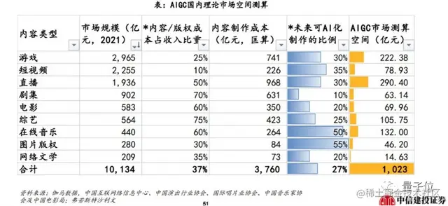 根据中信建投对各类内容未来可AI制作比例的测算,在视频成为信息主要表达载体的当下,无论是在游戏、短视频、直播,还是影视等领域,AI视频内容生成都将成为AIGC的主要关注方向。