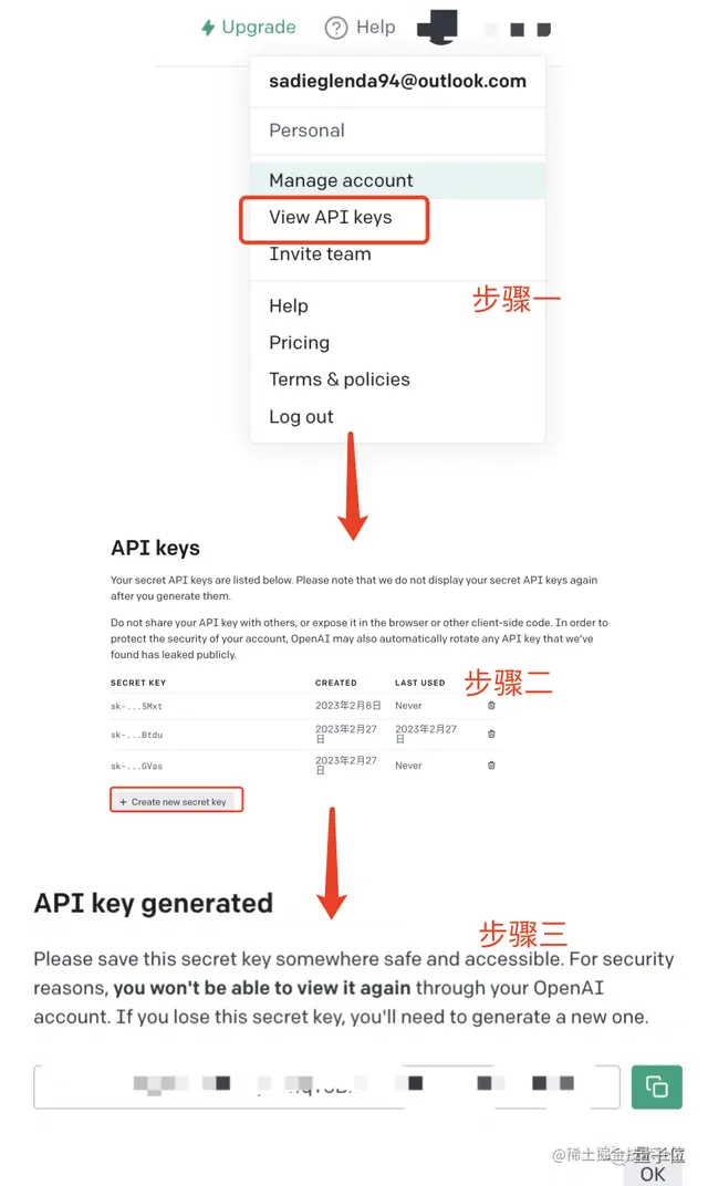 密钥可以直接从OpenAI官网上复制过来,具体步骤如下: