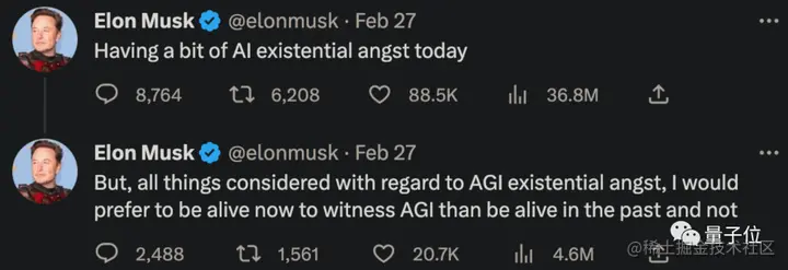 这点倒是和马斯克刚在推特上发的“我宁愿活着去见AGI,也不愿意活在过去”不谋而合。