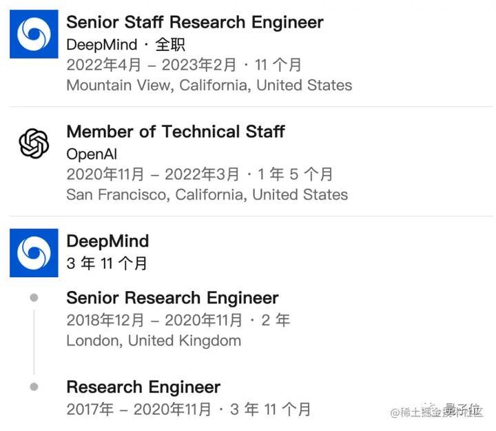 有意思的是,在就职DeepMind期间,他曾短暂地“跳槽”到OpenAI干了两年。