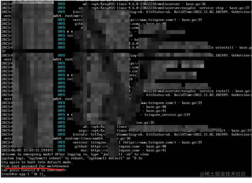登录用户服务器,用./easydss启动打印info之后,服务器直接报错:give root password for abubtenance,输入密码之后直接进入了/目录。