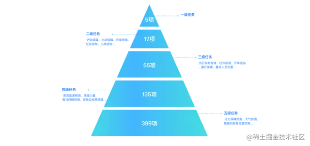 一是明确应用任务。围绕需求,明确客流预测预警、智慧防疫、气象防灾、消防安全、治安防控等5项一级任务,并逐项细化至最小颗粒度。如气象防灾包括雨、雪、冰雹、冰冻、大风、高温等6个二级任务,以及交通疏导、防滑处置等18个三级任务、63个四级任务。