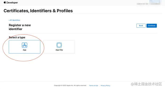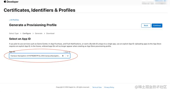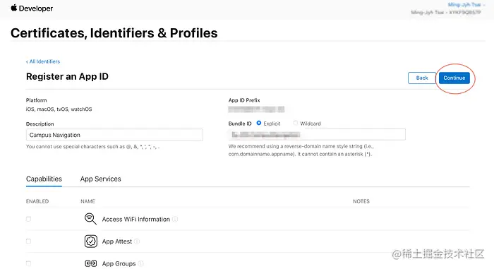 2.5 选取上一步骤所建立的App ID 后点选「Continue」