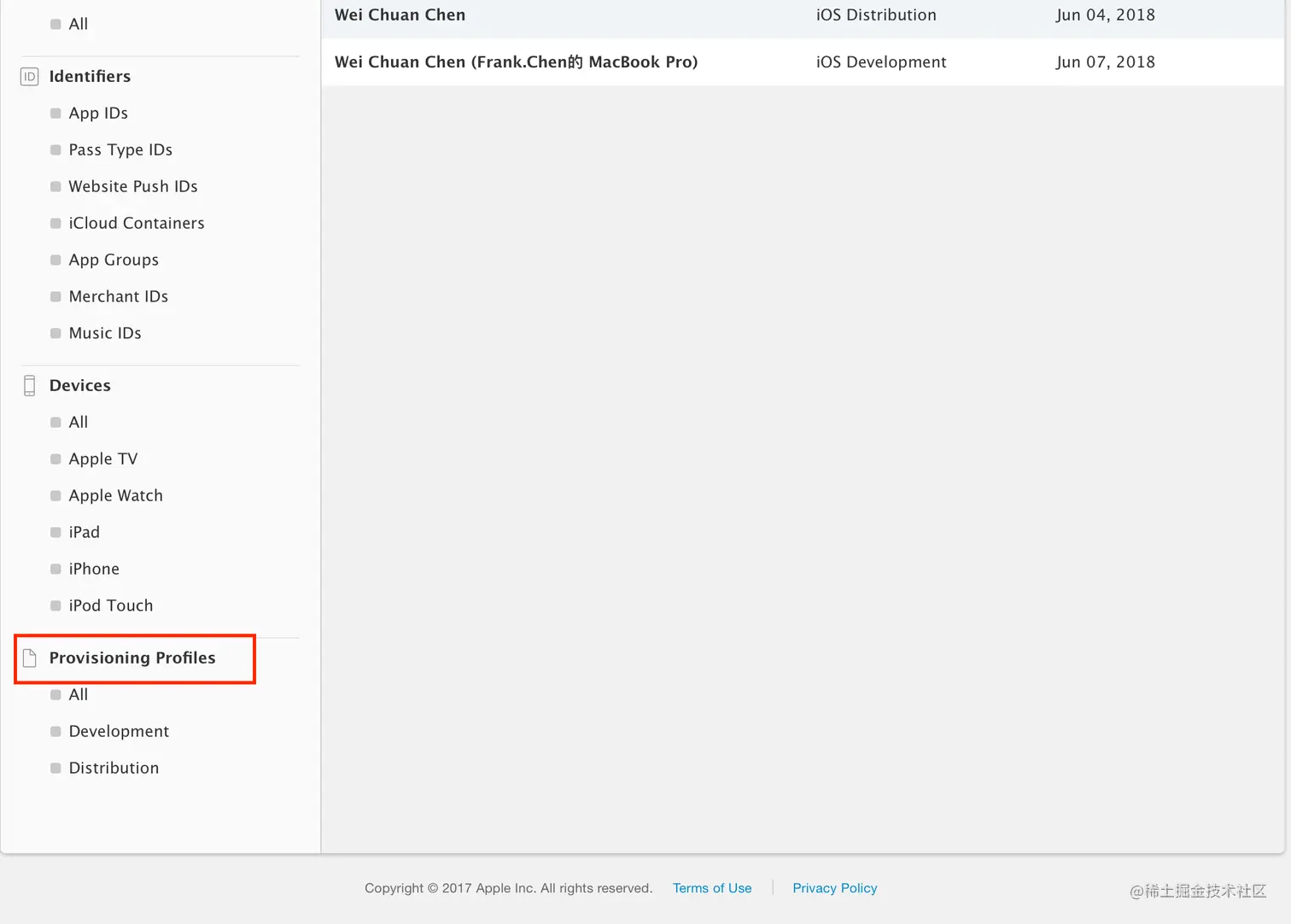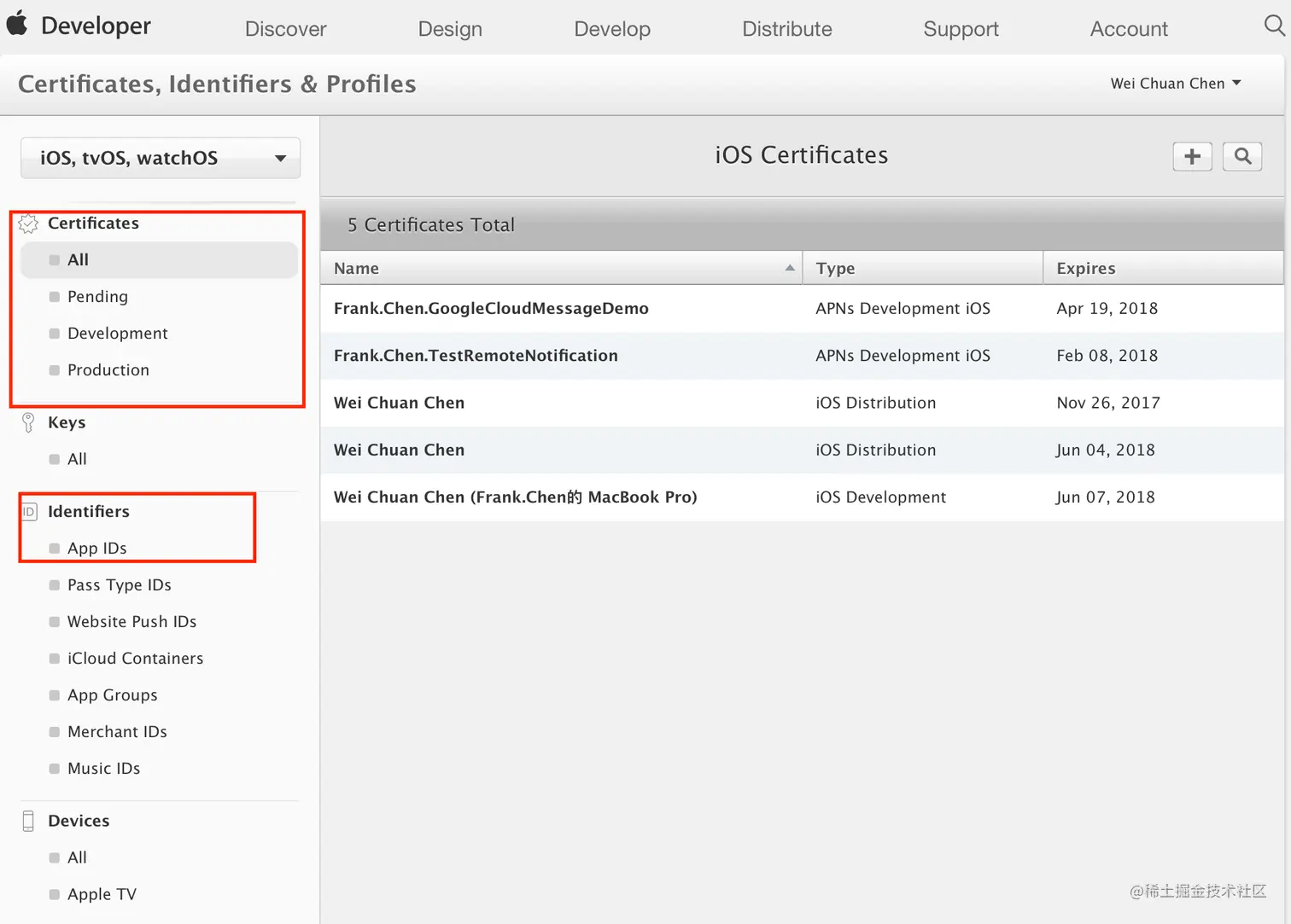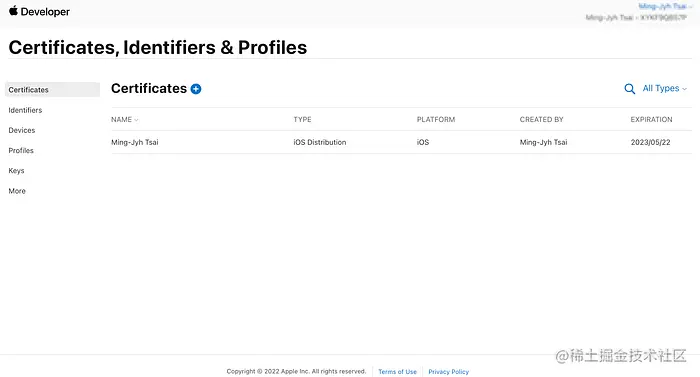 登入Apple Developer 网页,点选「Certificates, Identifiers & Profiles」