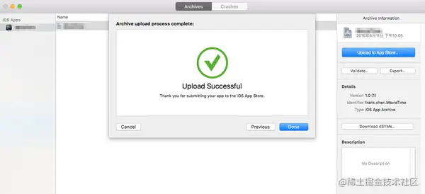 备注:没有很即时,必须等待一下子,才可在App Store Connect 查找到刚刚上传的档案