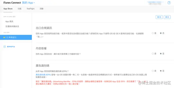4.7 选择「出口合规资讯」、「内容版权」、「广告识别码」等相关选项后,点选「提交」