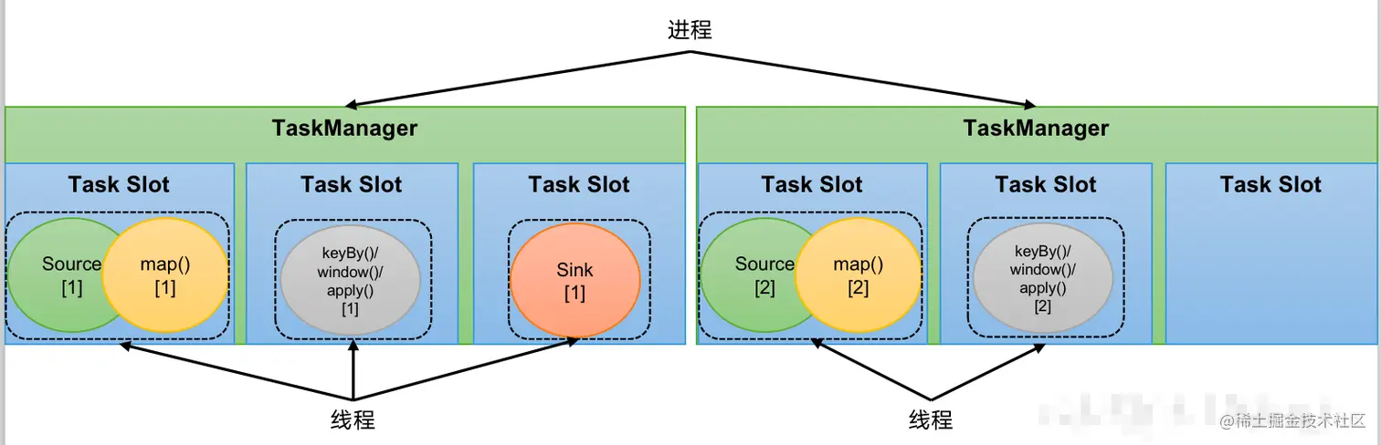 Flink中每一个TaskManager都是一个JVM进程,它可以启动多个独立的线程,来并行执行多个子任务(subtask)。