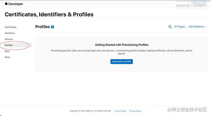 登入Apple Developer 网页,点选「Certificates, Identifiers & Profiles」