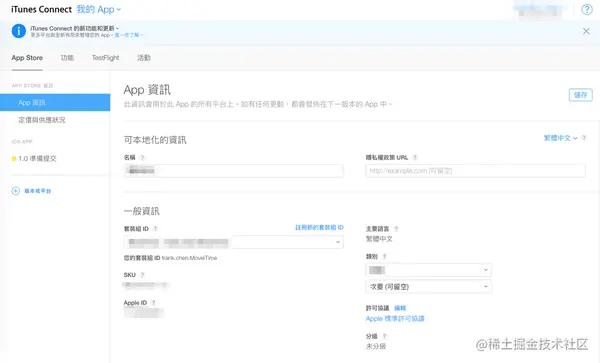 *SKU => App 名称- 版本(例{App Name}-1.0),此名称不会显示在App Store 上