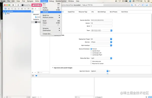 4.1 将编译的目标机器设置成「Generic iOS Device」,接着选取Product –> Archive