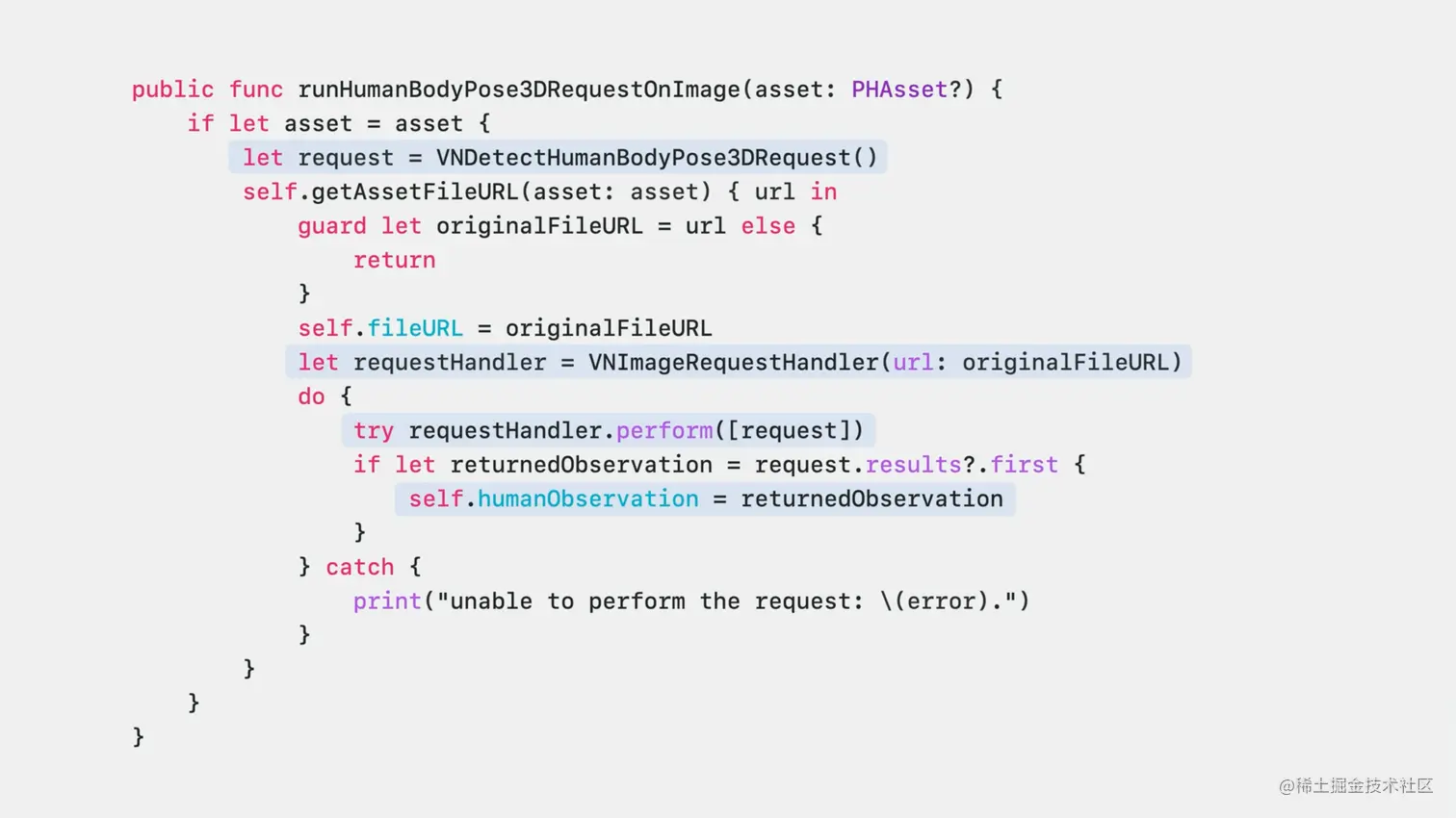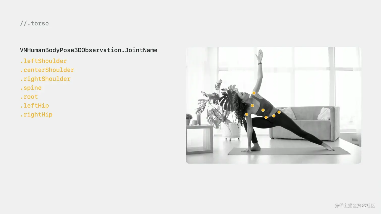 Vision框架中新增了VNDetectHumanBodyPose3DRequest请求,可以返回包含17个关节的三维骨架信息。 VNDetectHumanBodyPose3DRequest请求是Vision框架中的新功能,可以返回包含17个关节的三维骨架信息,这些关节可以通过关节名称或关节组名称进行访问。与其他返回的点不同,3D关节的位置是相对于现实世界中捕获场景的米数,并以根关节为原点。这个请求可以为应用程序提供更多的可能性和创新空间,例如健身应用程序可以使用这个请求来跟踪用户的运动姿势。