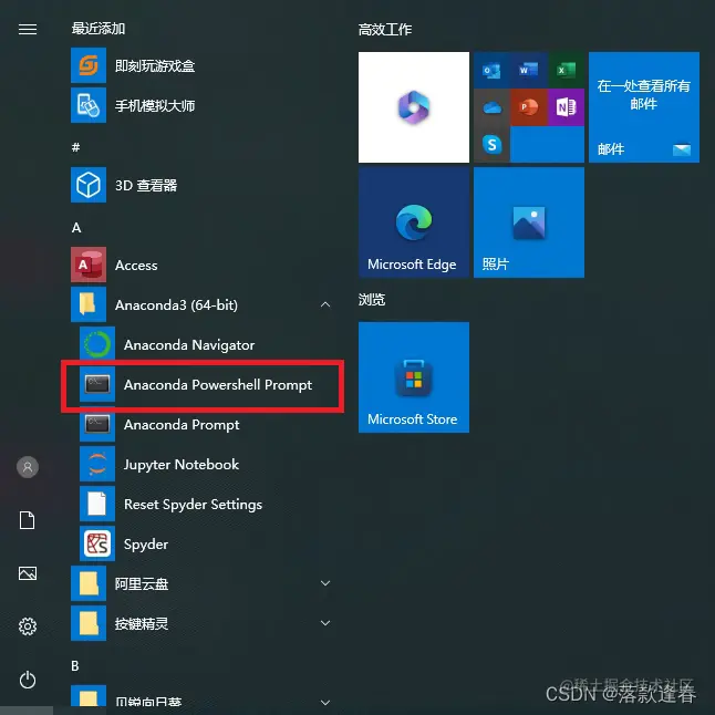 打开开始菜单,找到Anaconda3(64-bit),打开Anaconda Powershell Prompt(win10和win11都是一样的)