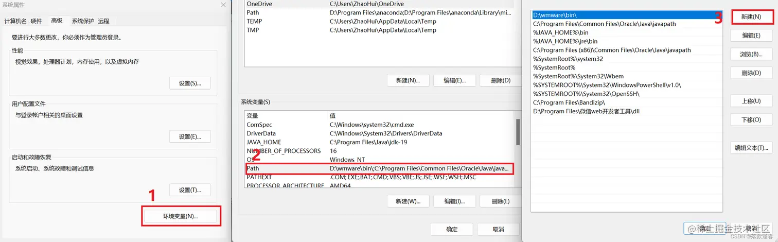 (2)点击“环境变量”,找到系统变量下的“Path”并点击进入,点击“新建”:
