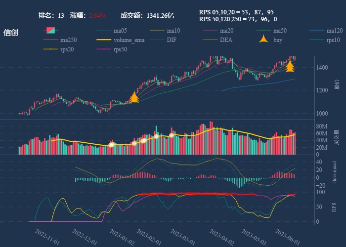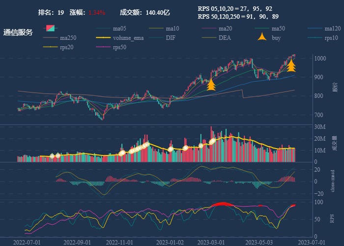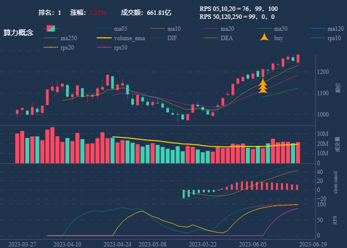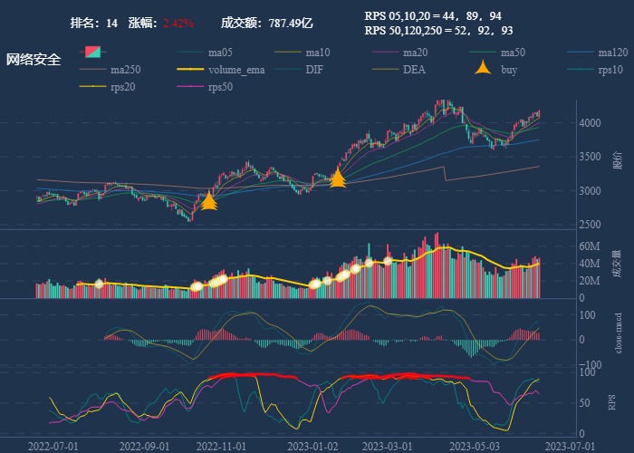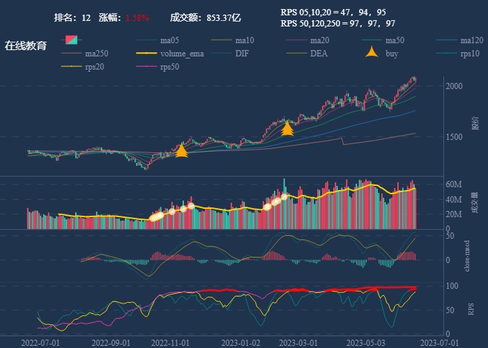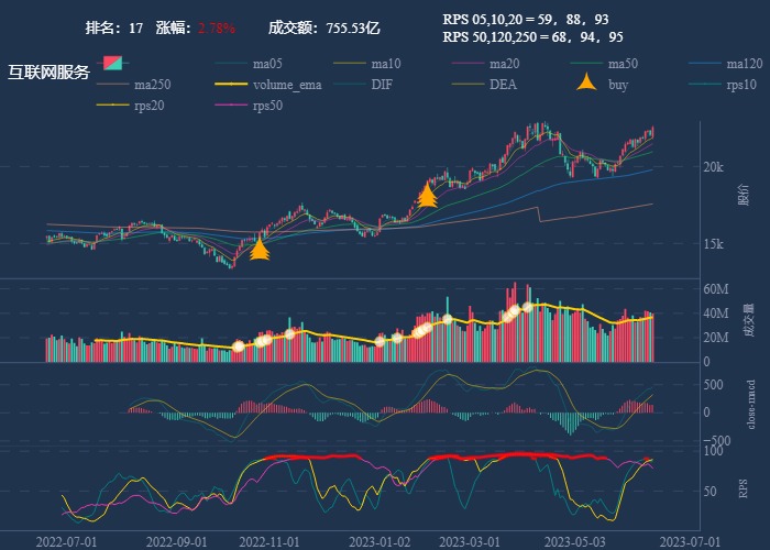 k 线图是最好的老师,点击详情图可以看到行业 20 日 RPS 的排名,最底下子图是行业 rps 走势线