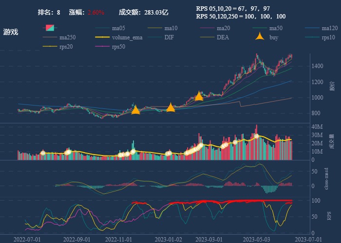 | 7 | 游戏 | ![]() | 2.60% | 283.03亿 | 67 | 97 | 97 | 100 | 100 | 100 | 2298.64万手 |
