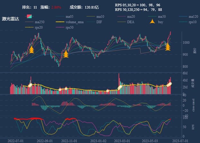 | 10 | 激光雷达 | ![]() | 2.86% | 120.81亿 | 100 | 98 | 96 | 94 | 79 | 88 | 491.07万手 |
