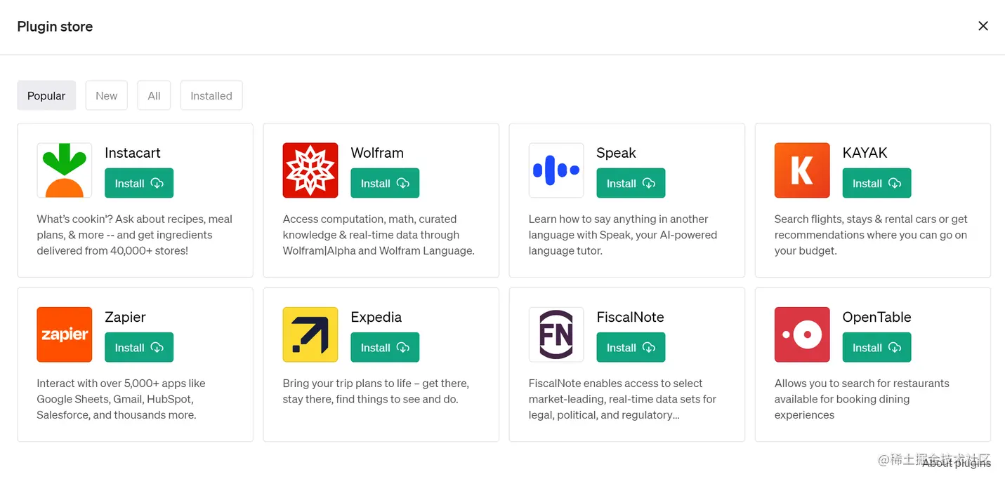 插件是一种可以嵌入到ChatGPT中的小程序,它们可以让AI执行特定的任务或提供特定的服务。比如说,有些插件可以让AI搜索网络上的信息、图片或视频;有些插件可以让AI生成图像、音乐或视频;有些插件可以让AI帮助你改写、优化或检查你的内容。