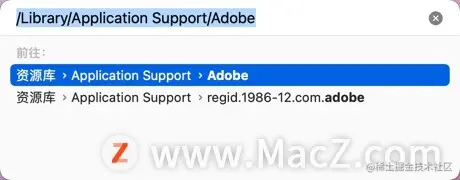 输入路径【/Library/Application Support/Adobe】,点击前往