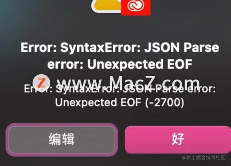 mac电脑安装Adobe时,会提示错误“Error:SyntaxError:JSON Parse error:Unexpected EOF”,这是怎么回事儿的,不管您是安装AI、PS、PR还是LR,如果也遇到相同的问题,可以参考一下方法解决。