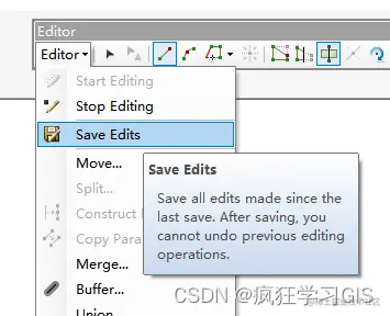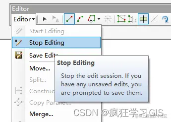 随后,通过“Editor”→“Stop Editing”选项,关闭编辑模式。