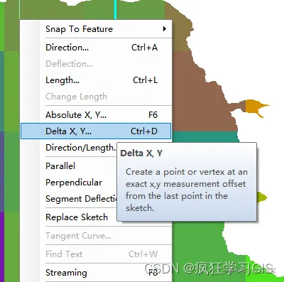 此外,如果我们需要绘制水平、竖直的线段,则可以通过鼠标右键单击,并选择“Delta X, Y...”功能,如下图所示。