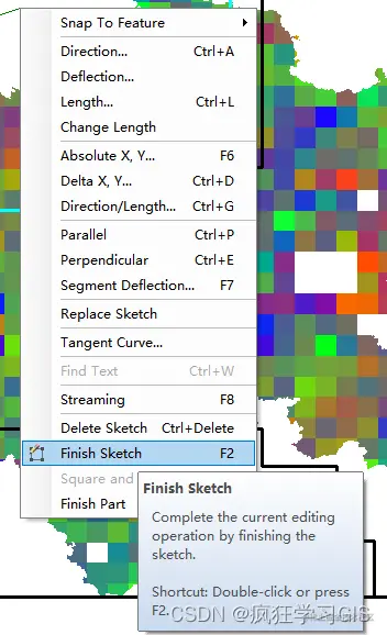 完成全部线段的绘制后,我们单击鼠标右键,并选择“Finish Sketch”选项;如下图所示。